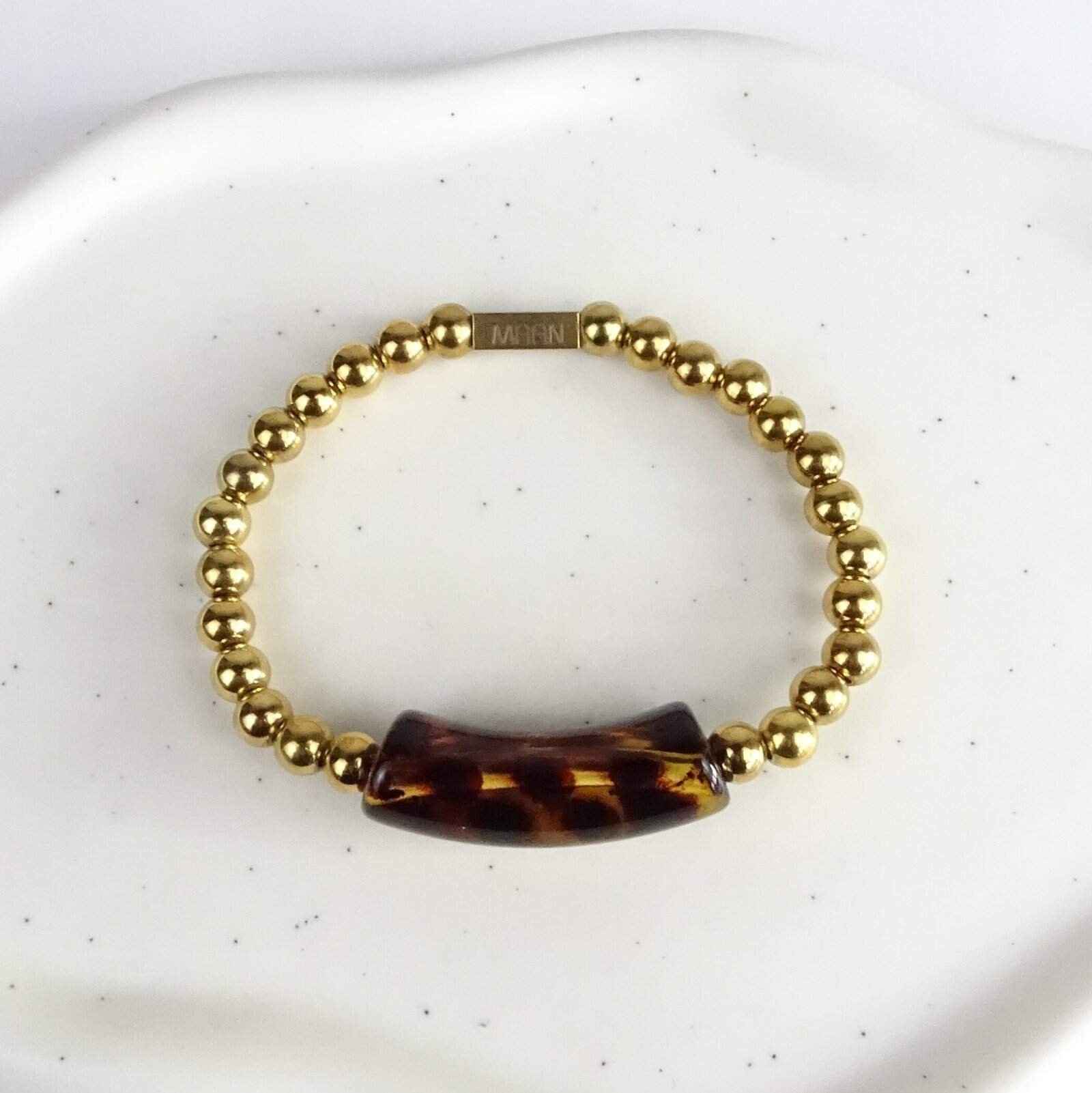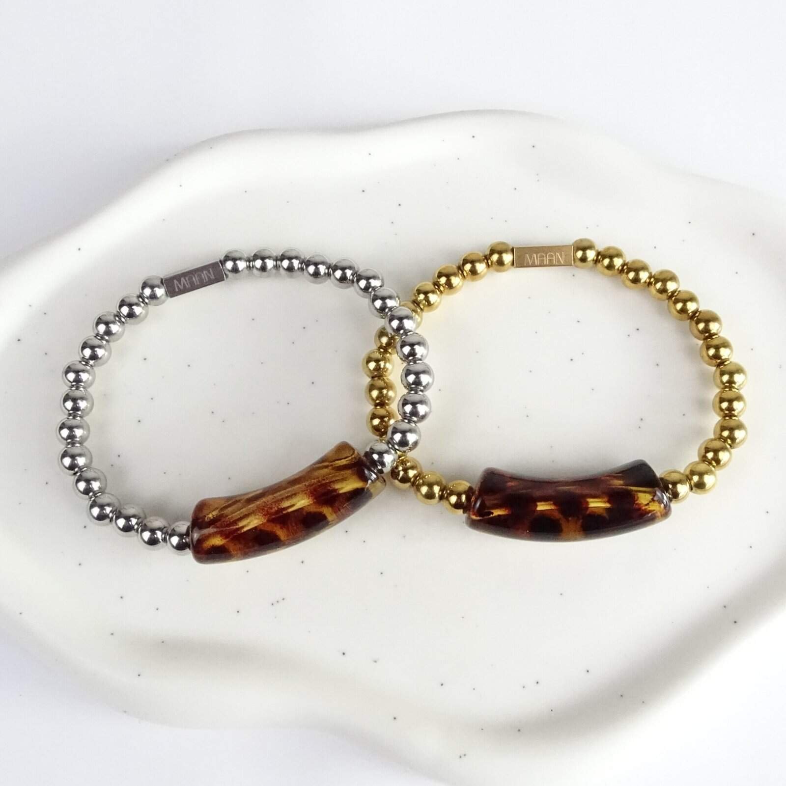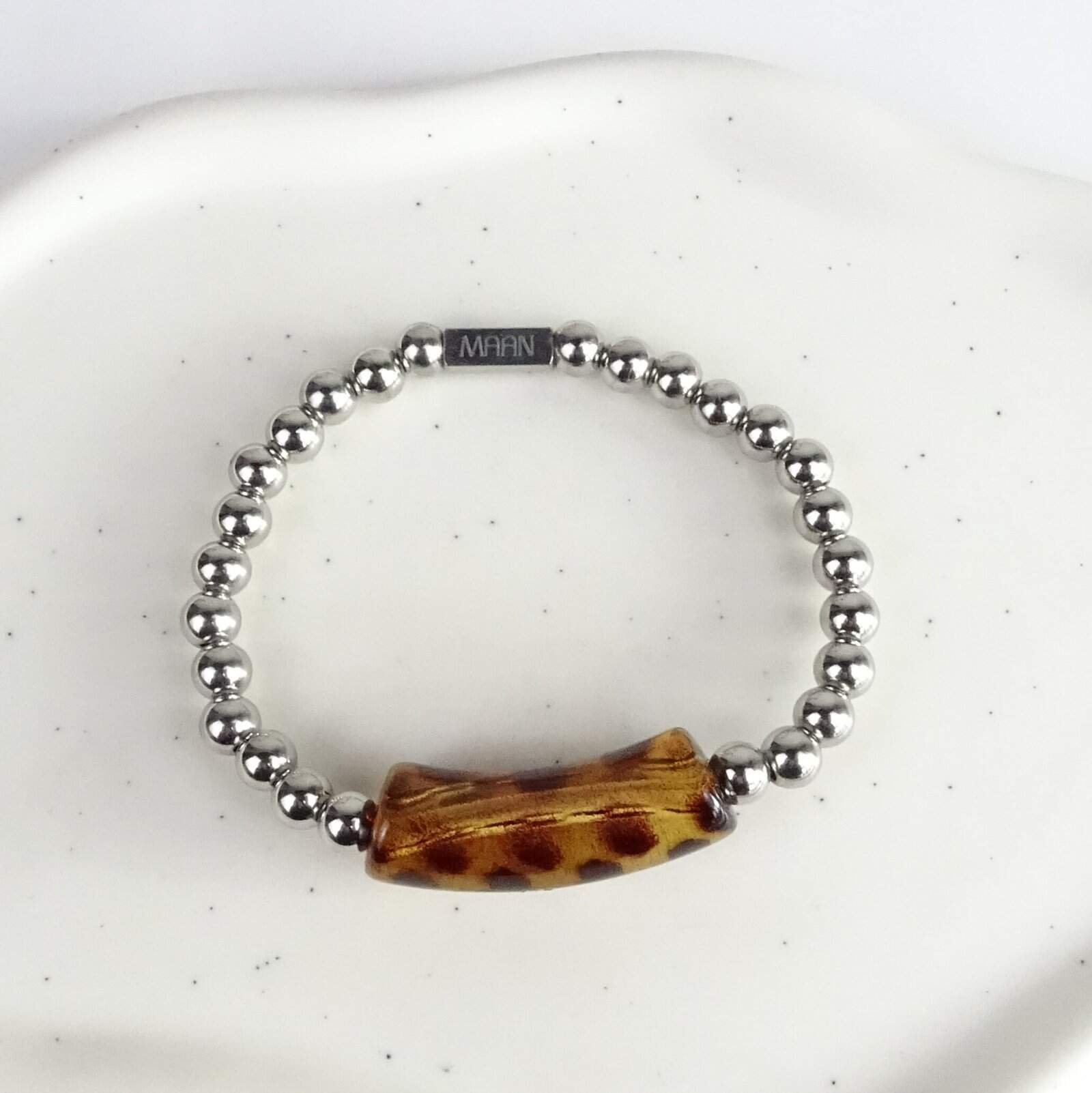 Ben je op zoek naar een duurzame armband van stainless steel met acryl? Dan is dit ontwerp van Maan Jewels een uitstekende keuze. Stijlvol, comfortabel en van hoge kwaliteit. Een must-have voor elke sieradencollectie.