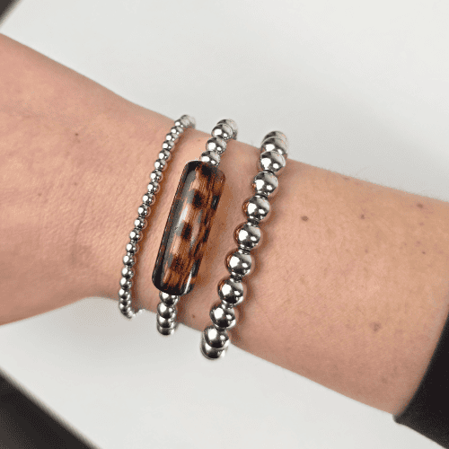 Het acryl detail geeft de armband een speelse en moderne touch. Acryl is licht van gewicht en comfortabel om te dragen. De combinatie van stainless steel en acryl maakt deze armband uniek. Het ontwerp is minimalistisch maar opvallend. Ideaal voor wie houdt van subtiele sieraden met karakter.