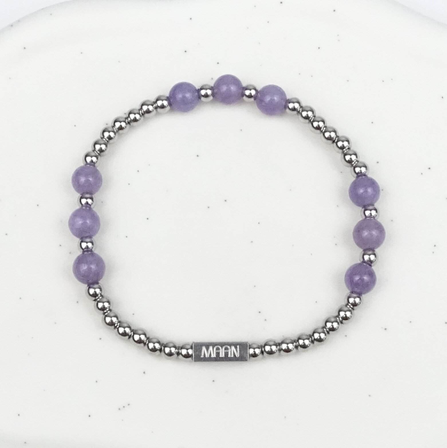 Deze handgemaakte lepidoliet armband van Maanjewels straalt rust, zachtheid en verfijning uit. Elk sieraad wordt met de hand vervaardigd en met zorg samengesteld, waarbij natuurlijke lepidoliet edelstenen worden gecombineerd met duurzame stainless steel kralen. De armband is niet alleen een stijlvolle accessoire, maar ook een sieraad met een diepere betekenis.