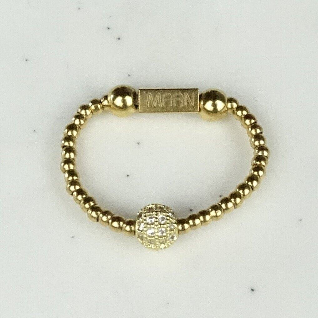 Wat deze ring echt bijzonder maakt, zijn de sprankelende zirkonia ballen die tussen de kralen zijn verwerkt. Deze kleine, schitterende elementen vangen het licht op een prachtige manier en geven de armband een luxe uitstraling. Het resultaat is een subtiel fonkelend effect dat perfect past bij zowel een casual outfit als een elegante avondlook.