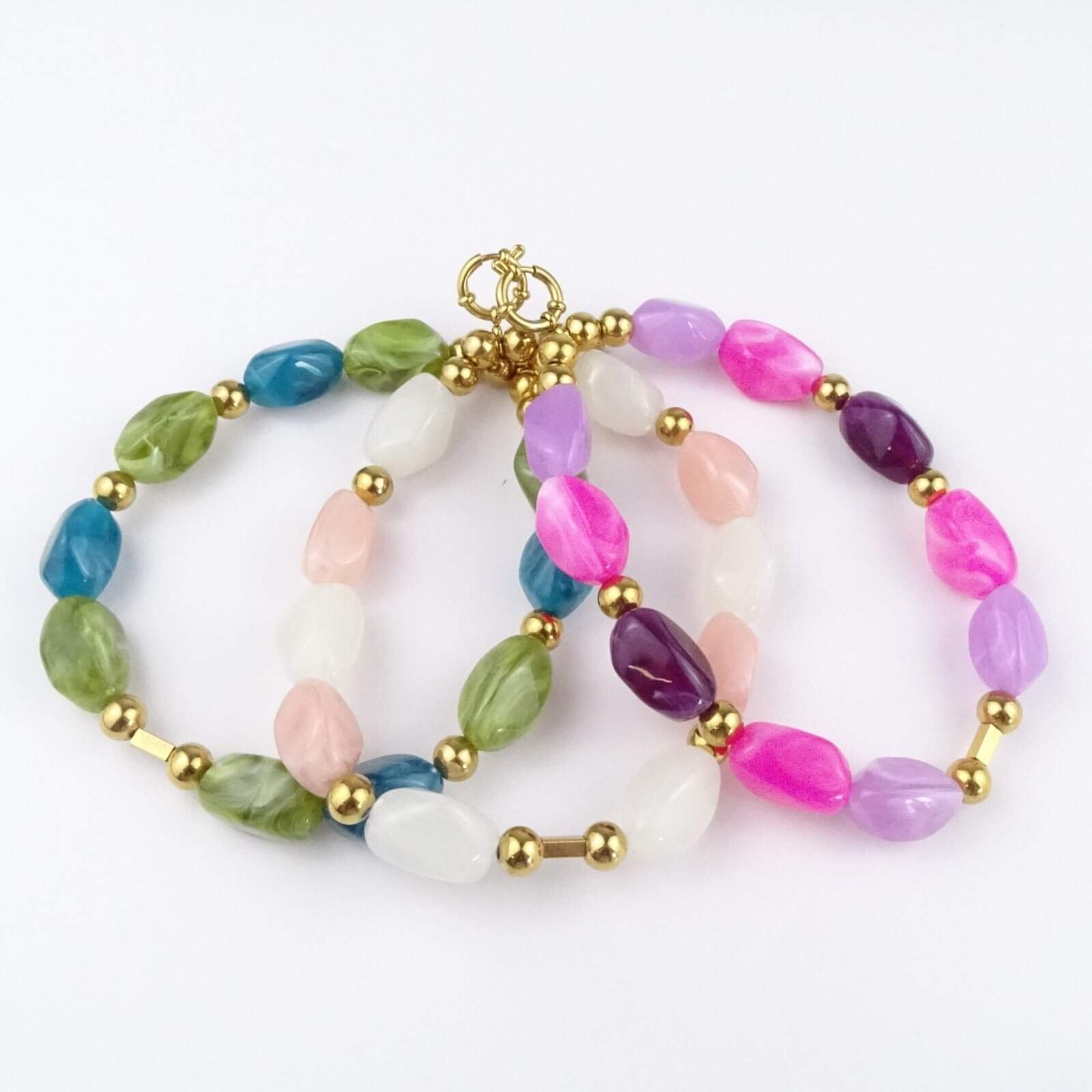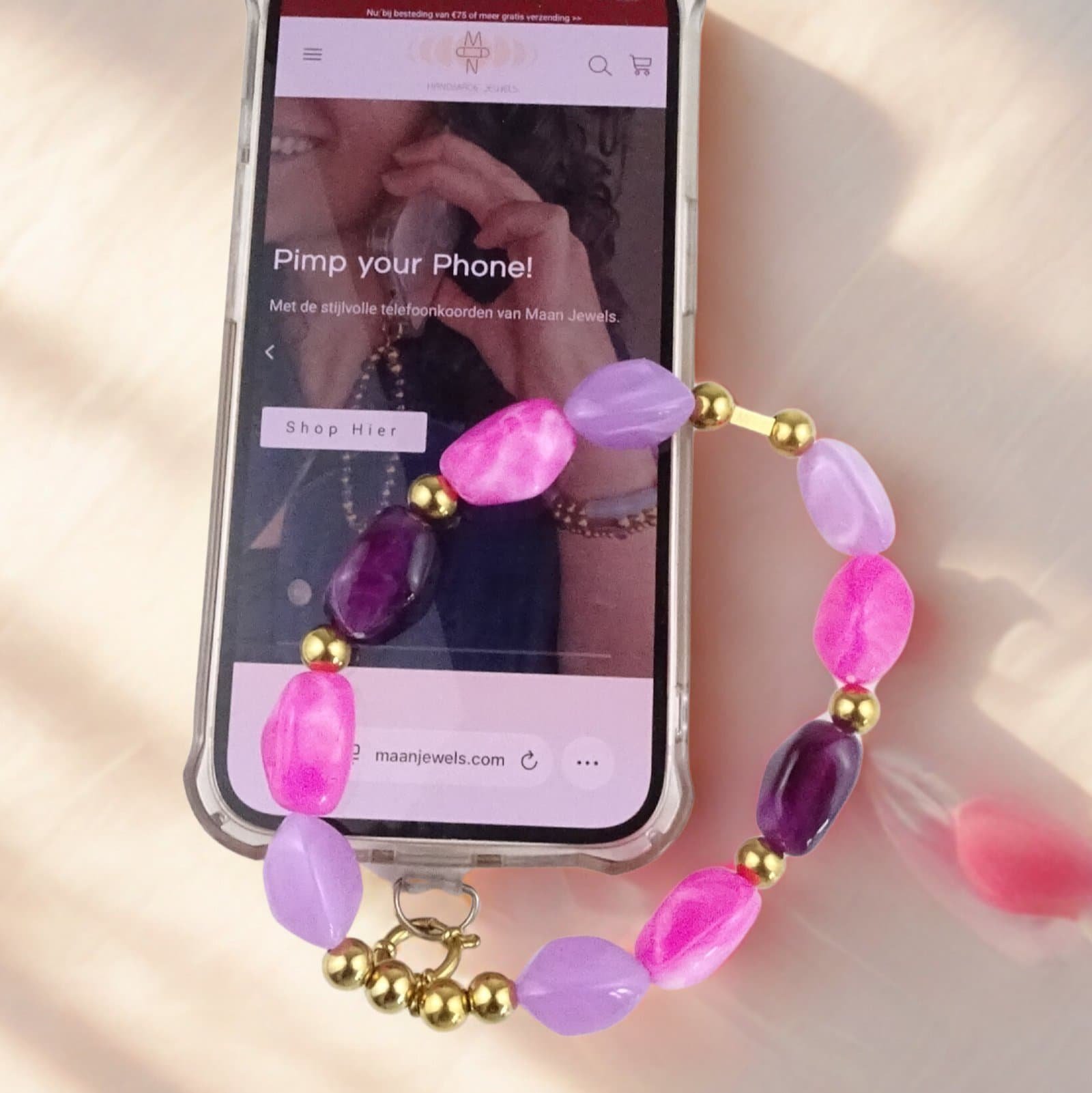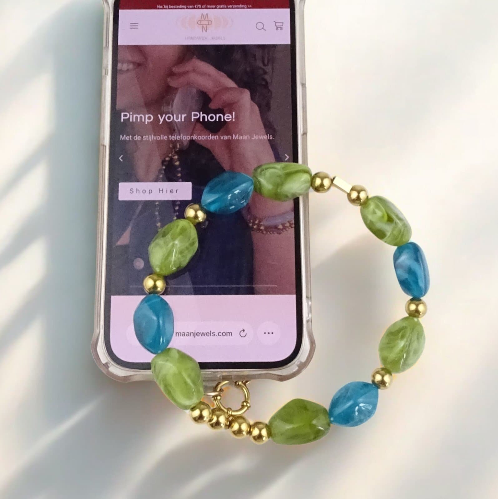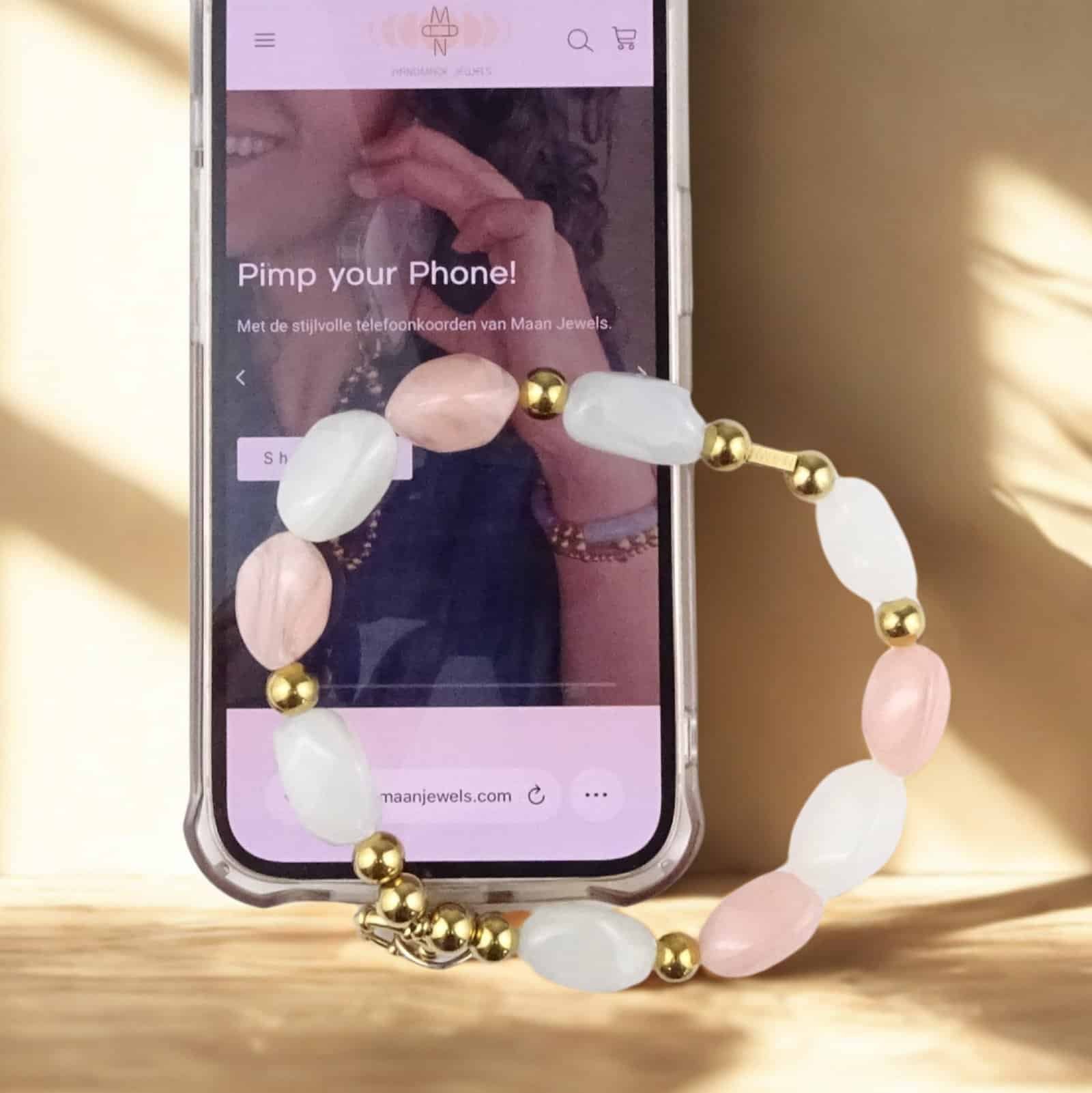 Onze telefoonkoorden zijn handgemaakt met hoogwaardige materialen zoals duurzame acryl kralen en roestvrijstalen (stainless steel) accenten. Dit zorgt niet alleen voor een luxe uitstraling, maar ook voor een lange levensduur. Stainless steel verkleurt niet en is bestand tegen water en zweet, waardoor jouw telefoonkoord er langdurig mooi uit blijft zien.